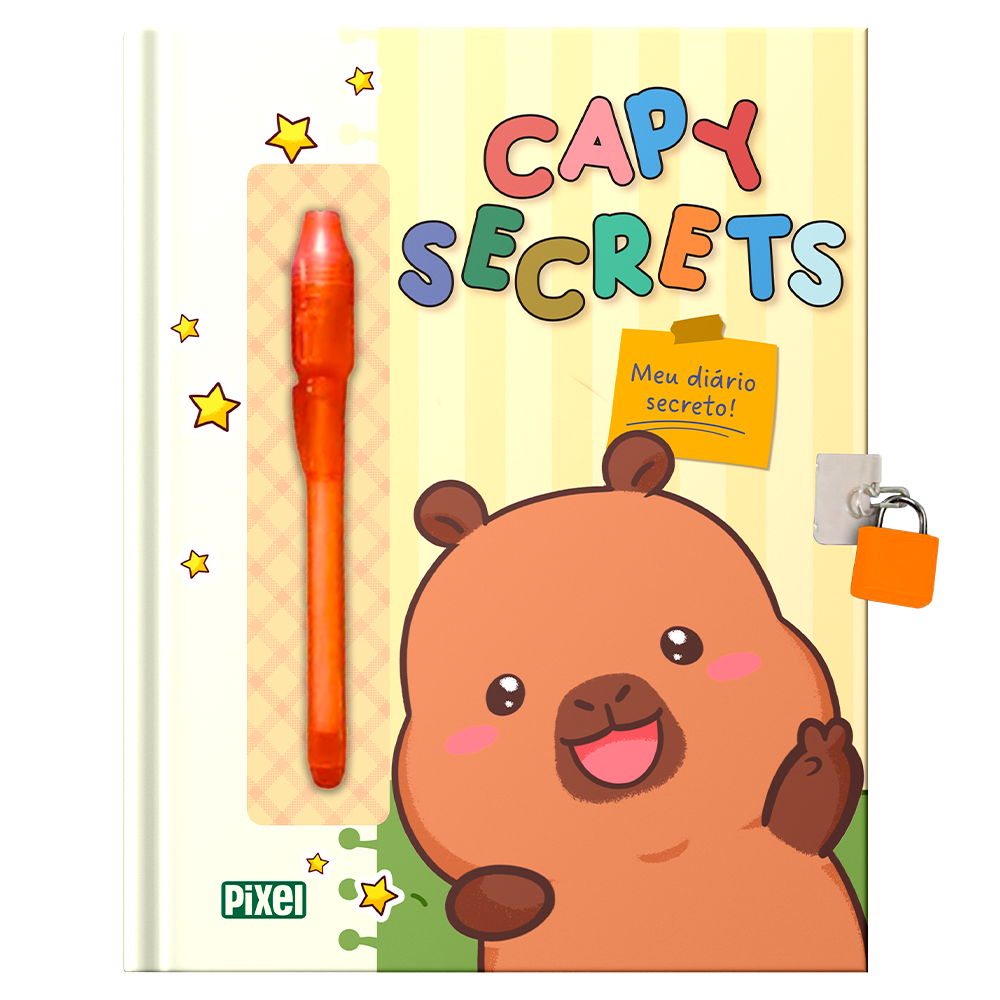 Este não é um diário comum. É um cantinho só seu, cheio de fofura e protegido por capivaras adoráveis. Aqui você pode escrever sobre o seu dia, sonhar com o futuro, criar listas, fazer desenhos e guardar segredos.