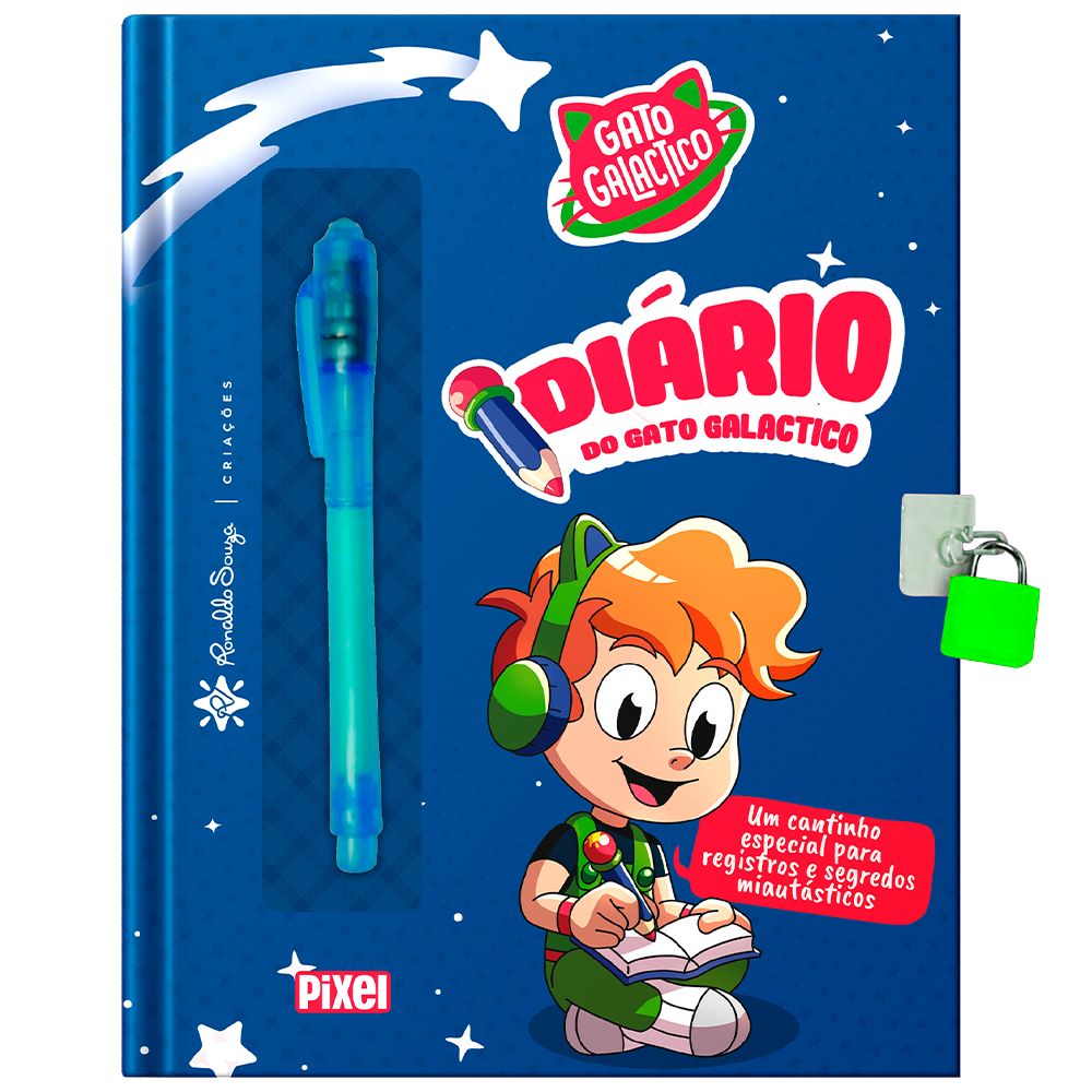 Um diário galactico, uma caneta mágica e um espaço só seu no universo do Gato Galactico!
