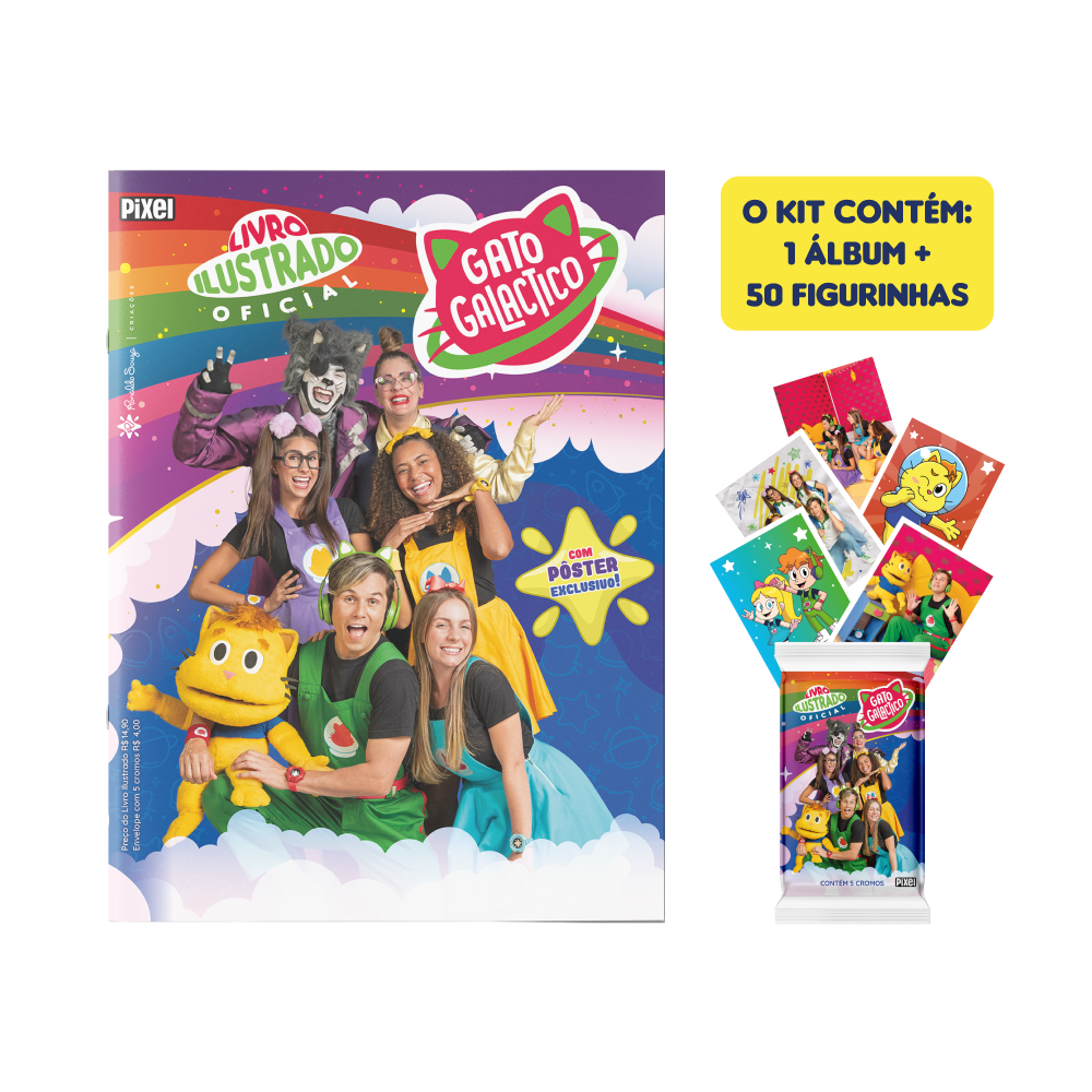 O Kit Álbum Oficial Gato Galáctico + 50 figurinhas contém: