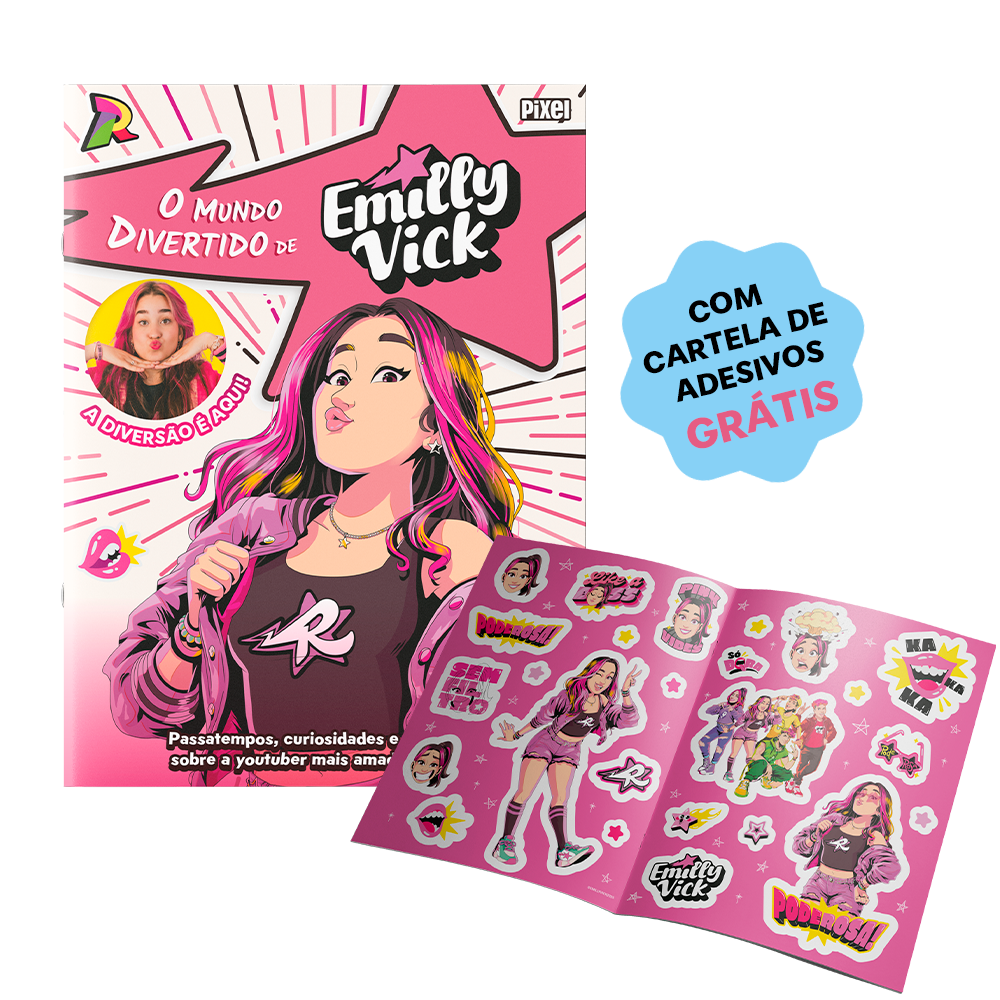 APERTE O PLAY, PORQUE A BRINCADEIRA VAI COMEÇAR! Que tal embarcar no divertido mundo de Emilly Vick? Neste livro superespecial, você vai descobrir muitas curiosidades sobre uma das youtubers mais queridas e populares do Brasil, além de se divertir de montão com os passatempos e atividades variadas! Esta é a chance perfeita de ficar ainda mais pertinho dela — agora também fora das telas — e mergulhar em um universo cheio de cor, alegria e boas surpresas! Aperte o PLAY e vamos nessa!